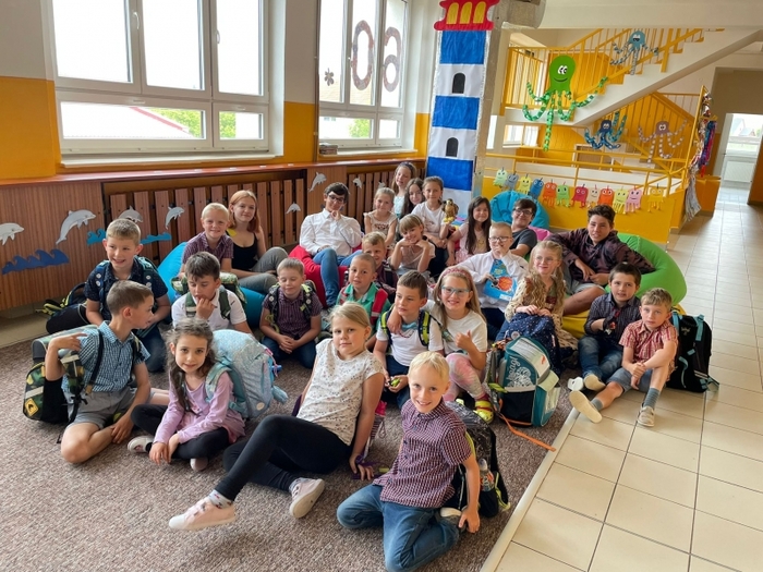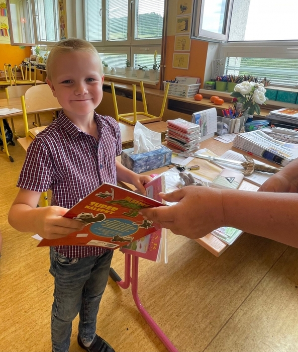 Dnešní den byl pro všechny prvňáčky slavnostní. Splněním těžkých úkolů ze čtenářské gramotnosti si vysloužili titul Čtenář. Záštitu nad každým družstvem měli žáci z 9. třídy, kterým se povedlo dovést všechny až k pasování.