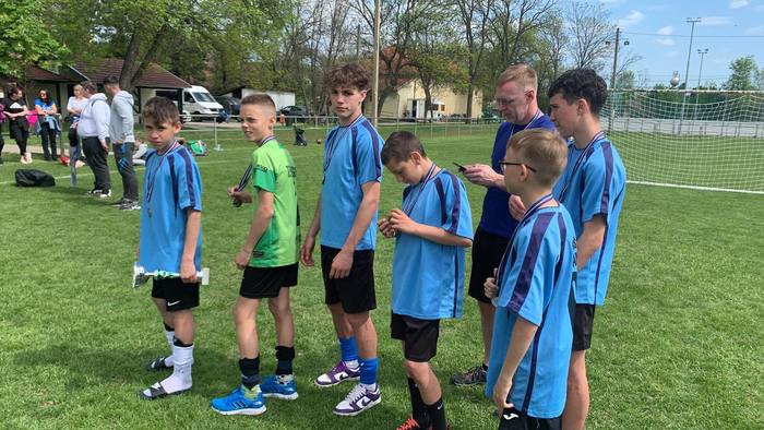 Na konci dubna se vybraní žáci naší školy zúčastnili mezinárodního fotbalového turnaje se školami, se kterými máme mezinárodní spolupráci. Nejdříve se 6 týmů rozdělilo do dvou skupin, pan ředitel měl při losování šťastnou ruku a tak jsme hráli proti 2 týmům z Maďarska. Obě dvě utkání jsme vyhráli s přehledem a čekali tak na nás Slováci. S těmi jsme bohužel prohráli a tak nás čekal zápas o 3. místo. To jsme opět s přehledem vyhráli. Domů jsme si přivezli krásný pohár a medaile, ale i zážitky ze slovenské školy v Maďarsku. Utužili jsme tak přátelství mezi vrstevníky z jiných zemí. Klukům děkuji za výtečnou reprezentaci naší školy, tak i sebe samých a těšíme se na další takové sportovní klání.