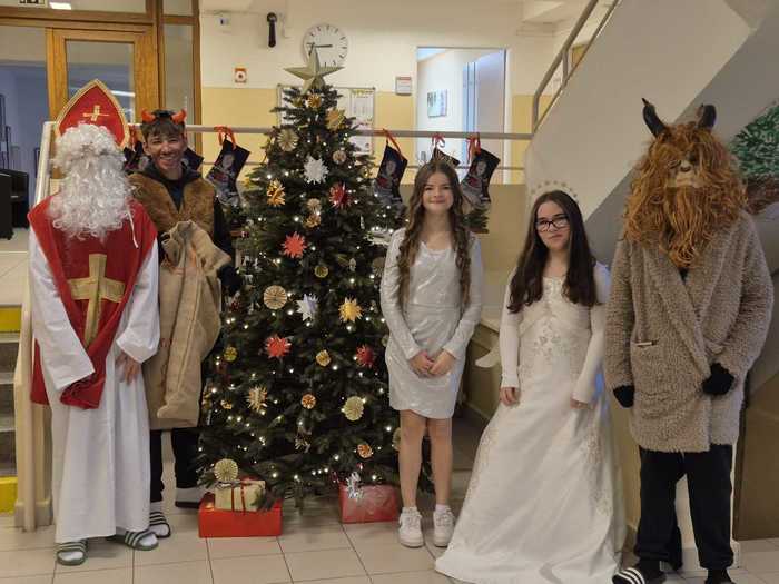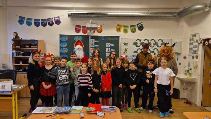 Dnes celou naší školou prošel Mikuláš. Tradičně se této role ujali žáci 9. ročníku. Máme hodné žáky, a tak si čerti nikoho neodnesli. Mikuláš měl štědrého sponzora, a tak rozdával sladkosti i ovoce.