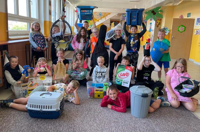 Nevyhovuje vám klasická školní brašna? Zkuste originální zavazadlo. Třeba nůši, zednické kolečko, pneumatiku, věšák na prádlo, obal na kytaru, rybářský naběrák nebo deštník. Všechna zavazadla byla funkční. Bylo těžké vyhodnotit nejoriginálnější "aktovku". Všichni účastníci dostali malý mlsek a teď......huráááá na prázdniny.