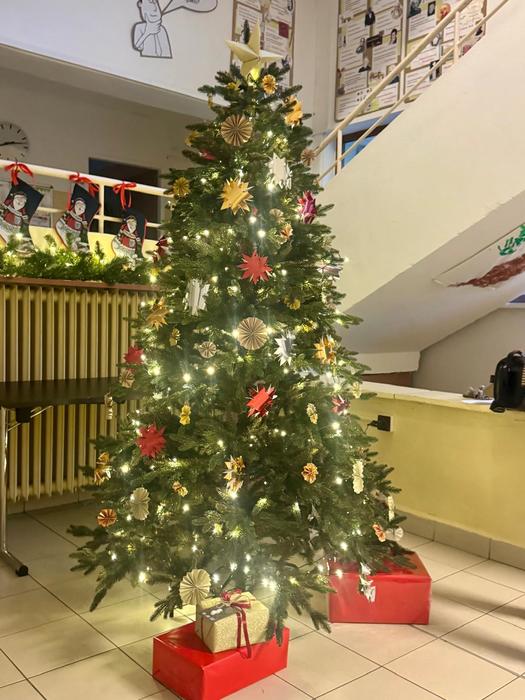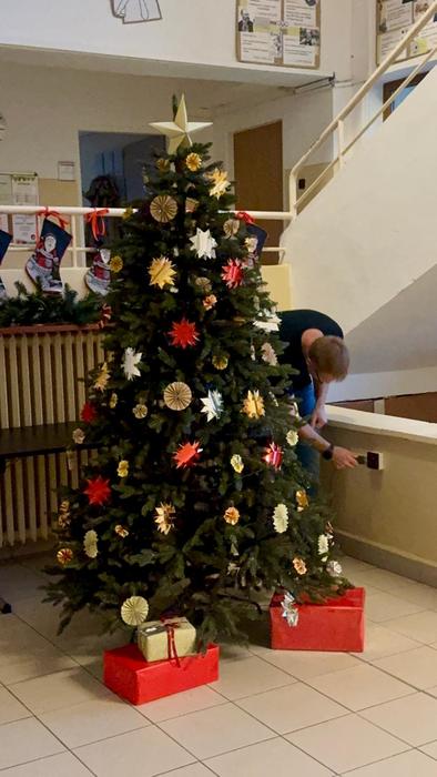 Dnes žáci i děti naší školy rozsvítili vánoční strom. Páťáci ho krásně nazdobili a všichni si zazpívali koledu, která byla klíčem pro pana ředitele k rozsvícení. A tak začal na naší škole adventní čas.