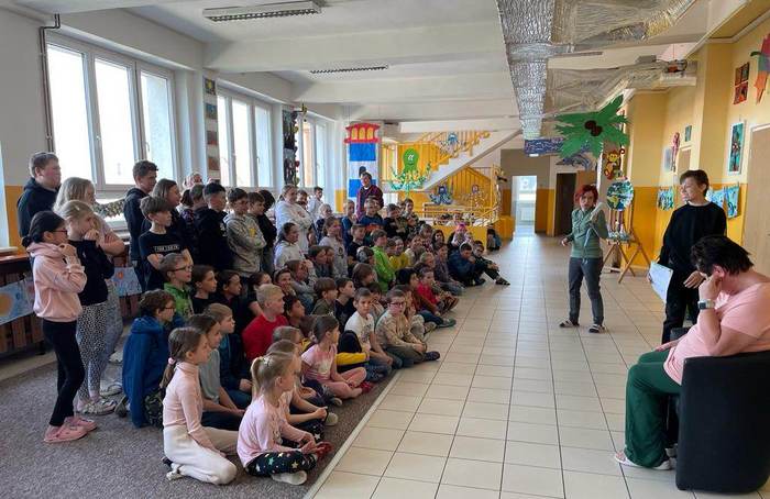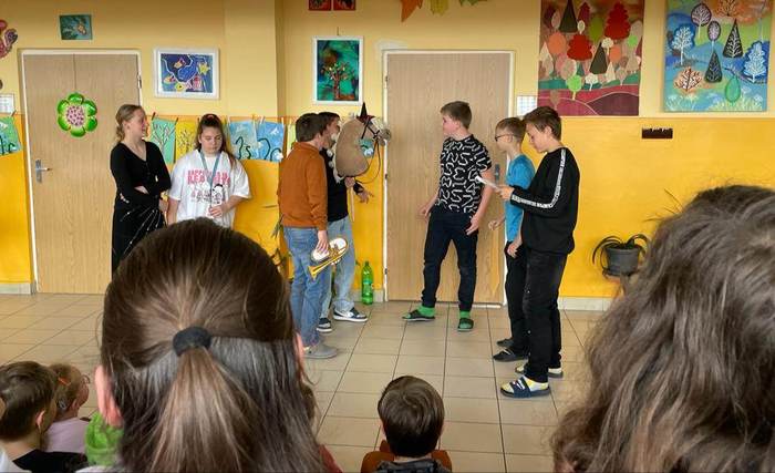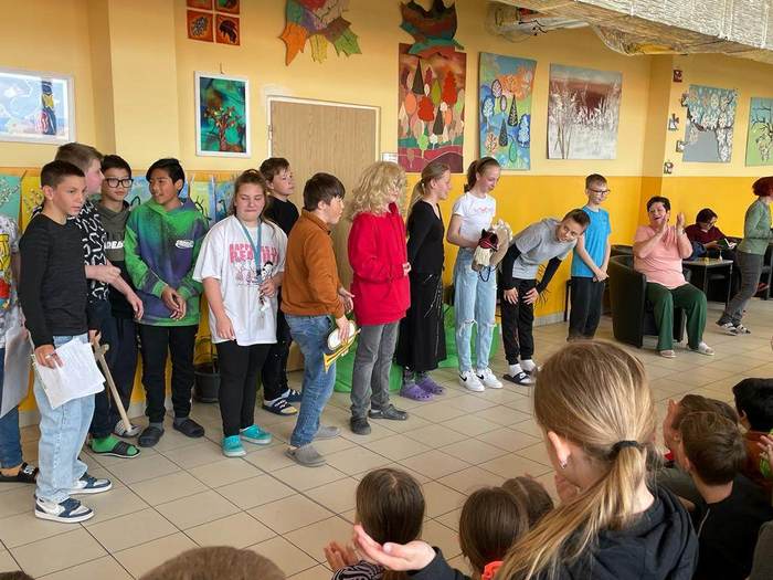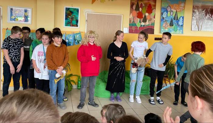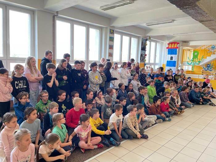 tentokrát už bez opory textu, a další hodinu představení ukázali všem žákům , kteří ten den do školy