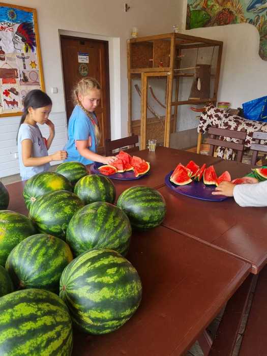 Dnešní den jsme si všichni naplno užili! Prvostupňové děti se zapojily do soutěživého dopoledne, které se opravdu vydařilo – krásné počasí nás stále provází. Starší žáci si mezitím dopřáli sladkou pauzu v cukrárně a chvíle strávené v lese potěšily malé i velké. Program byl bohatý a pestrý, a jako sladká tečka nás všechny čekala melounová odměna, za kterou děkujeme našim sponzorům.